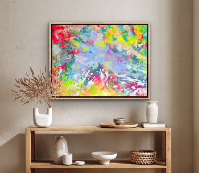 I’ve been digging deep. Trying to really hone in on honoring myself, listening deeply to my soul. Basing decisions on what feels right in my body versus in my head. My paintings are a very spiritual and soulful practice. They serve as a kind of meditation. This painting represents what it all feels like within.