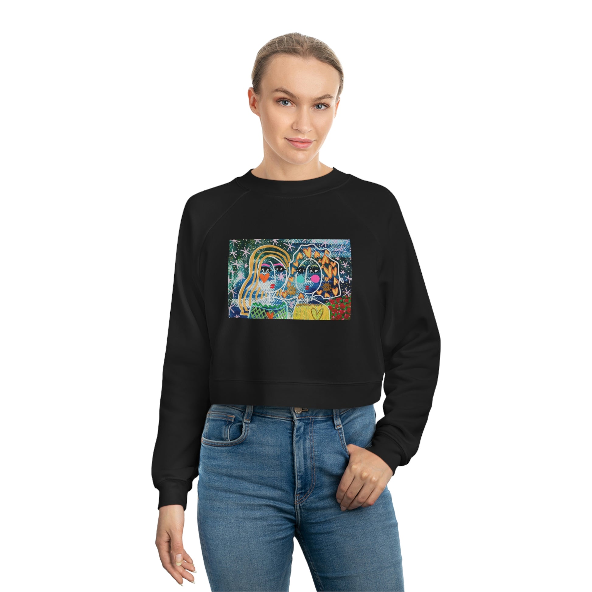 The woman’s raglan pullover fleece is a blend of 52% Airlume ring-spun cotton and 48% polyester fleece. The end result is an incredibly soft fabric that holds its shape well. This raglan-cut sweatshirt features contoured seams. ORIGINAL ARTWORK BY JACLYN ALTIERI