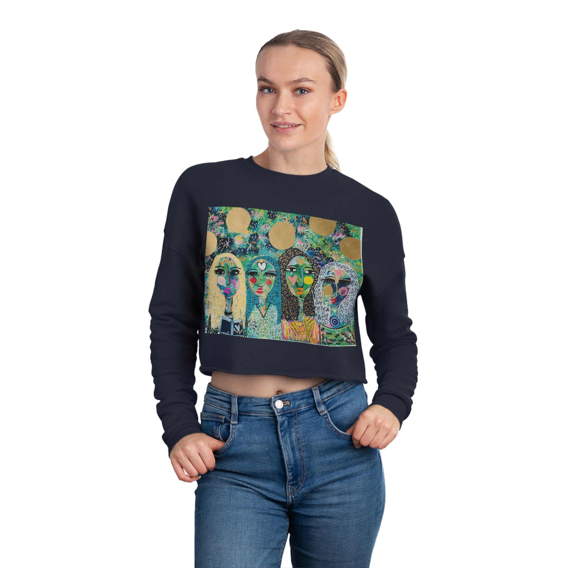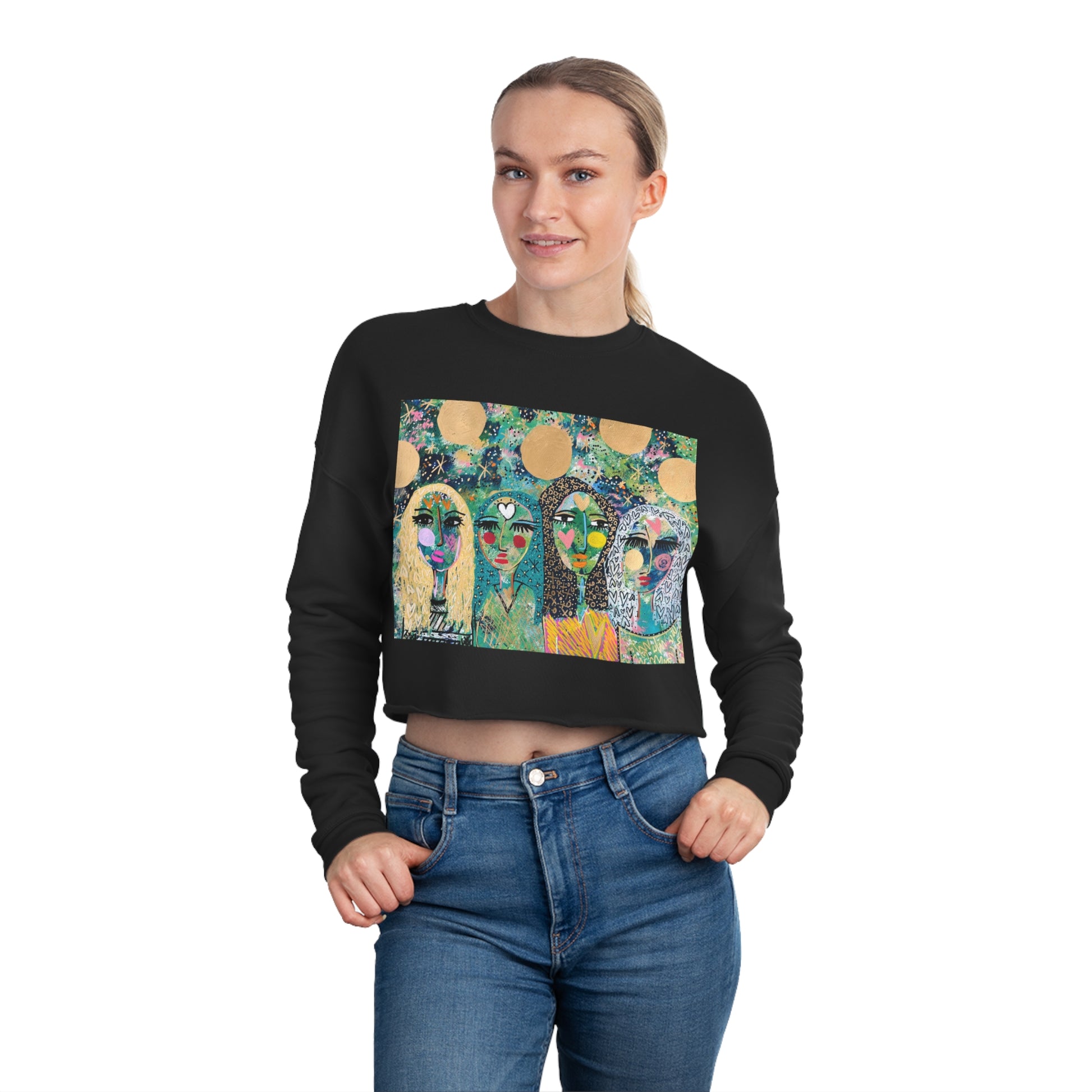 If style that turns heads is your thing, then the Bella+Canva 7503 women's cropped sweatshirt is exactly what you asked for. Made with fleece material that’s breathable and smooth to the touch, these classic women’s cropped shirts are the perfect everyday choice. The drop-shoulder seam along with the relaxed fit make for a comfy yet flattering look.Where friendship meets the cosmos and souls are never the same. Original art by Jaclyn Altieri.