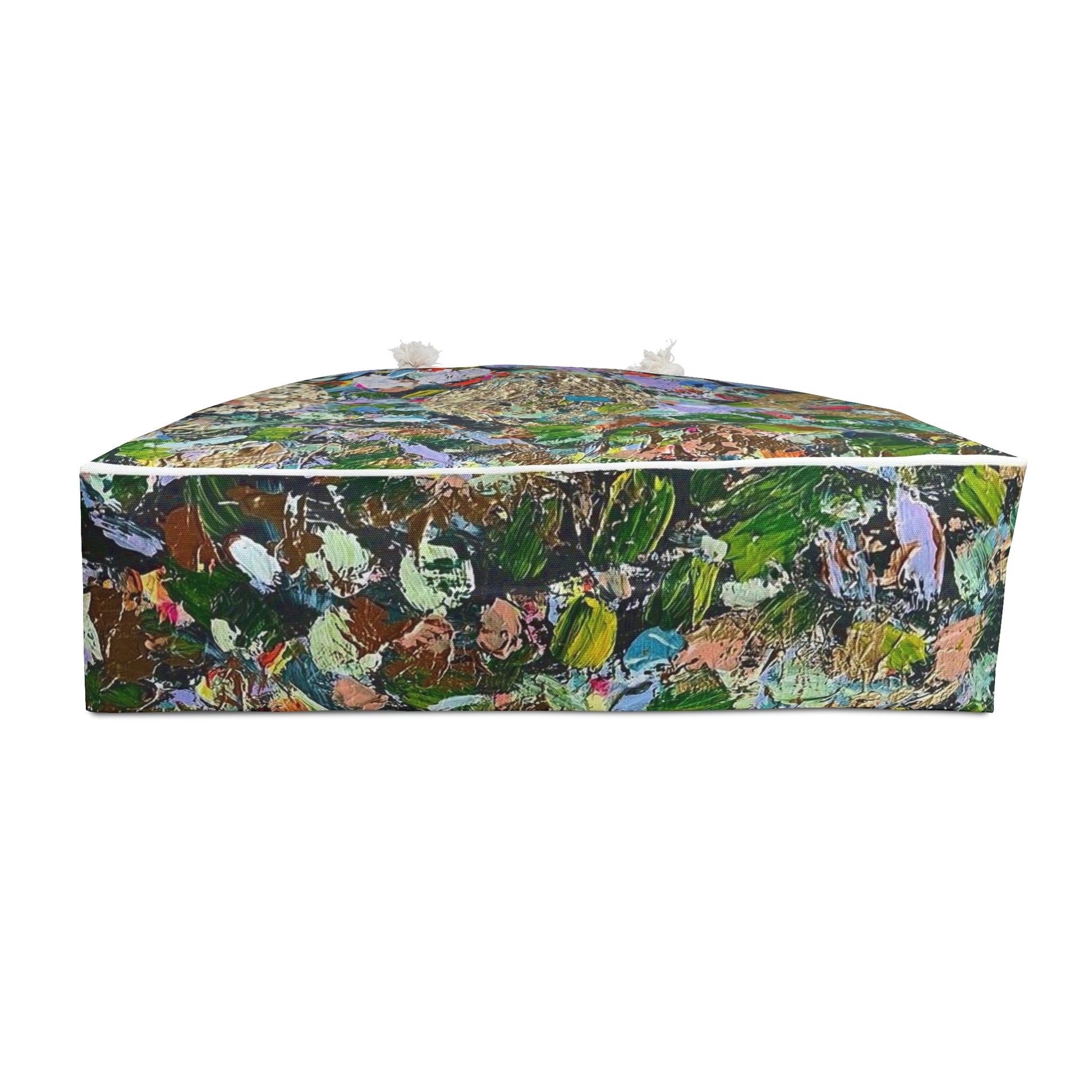 Our oversized Weekender Tote is perfect for your weekend at the beach or in town. The wide-mouthed, durable bag holds a generous amount of personal items and is easily held by its thick rope handles. Original Artwork by Jaclyn Altieri.