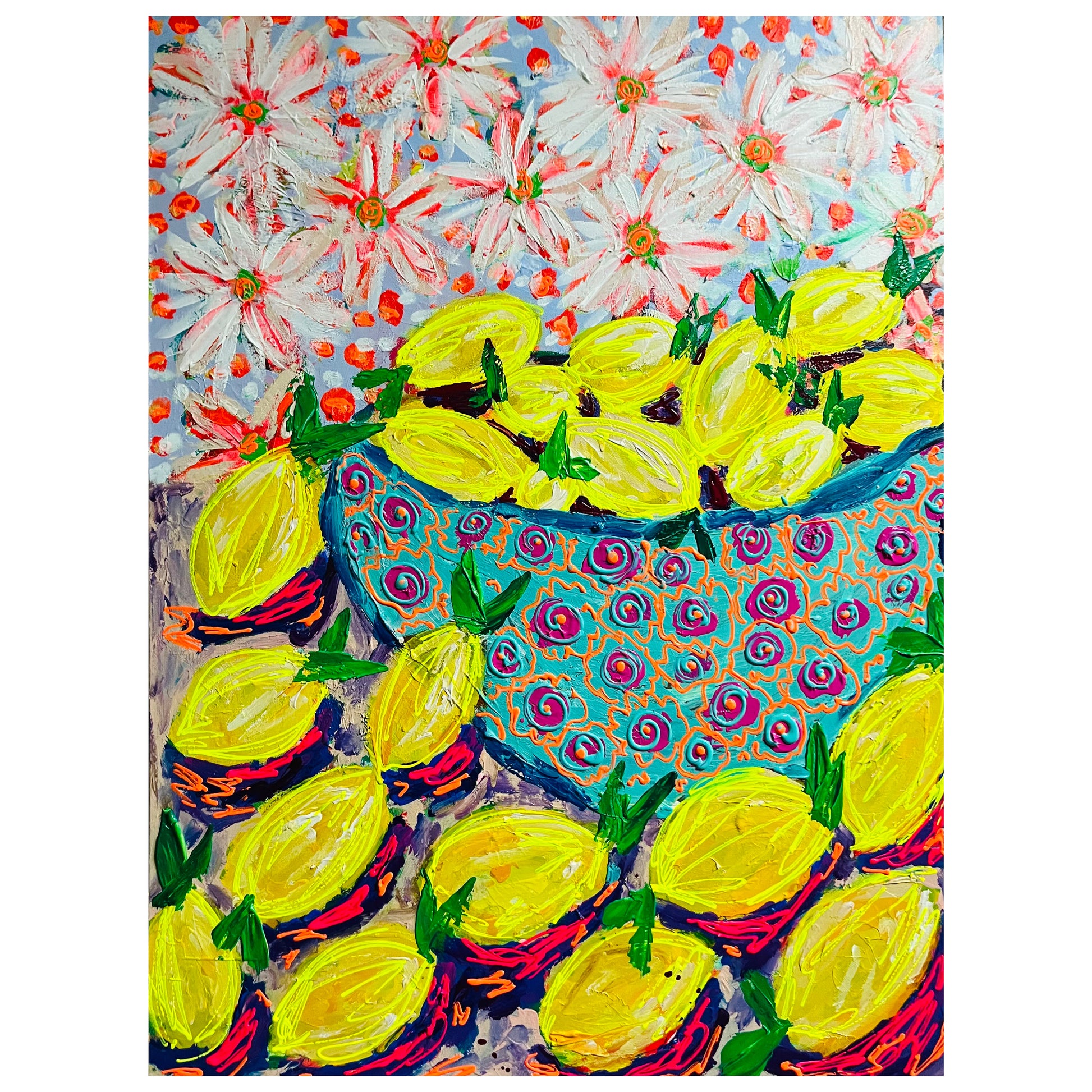 The Stuff of Life… bowls full of lemons desperate to be made into something sweet. This painting is about sitting with the lemons, admiring their lessons and their determination to make you face your fears. The challenges of life gives us an opportunity to see something beautiful in the unknown, in the fear.