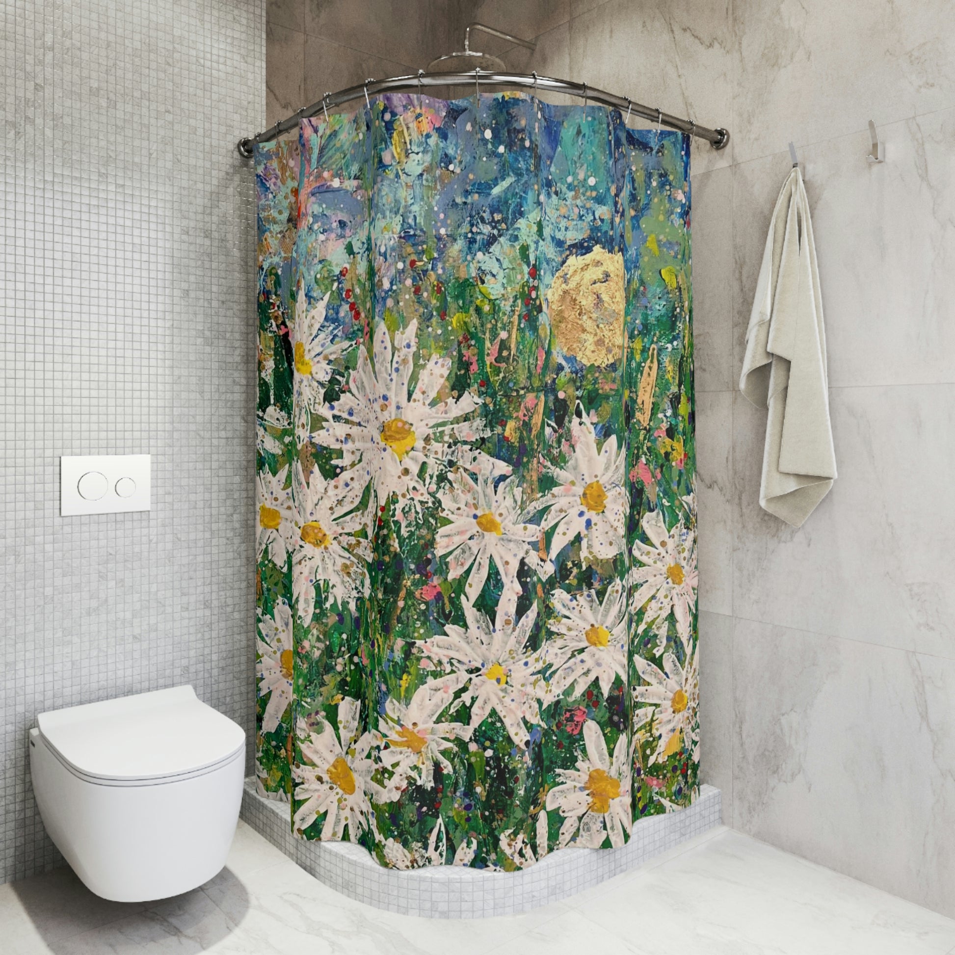 Created to turn any bathroom into a personal haven. Made with 12-stitch enforced eyelets and a 100% polyester material, they provide long-lasting decoration. Original Artwork by Jaclyn Altieri