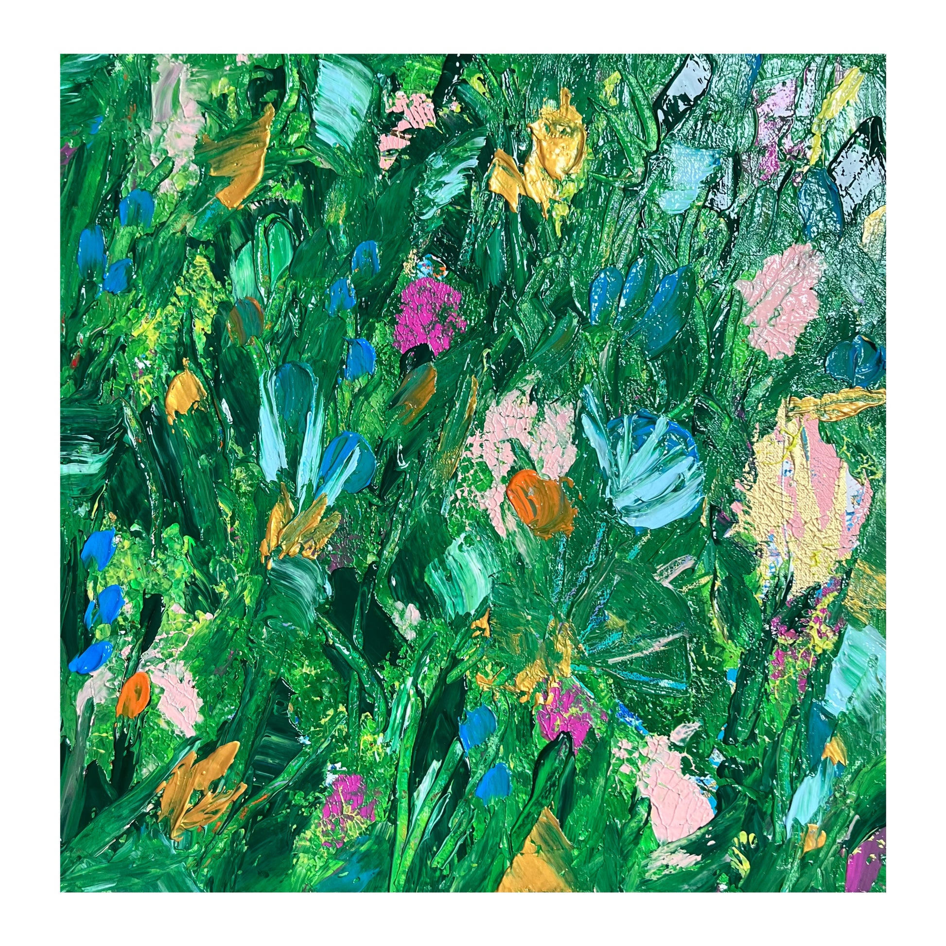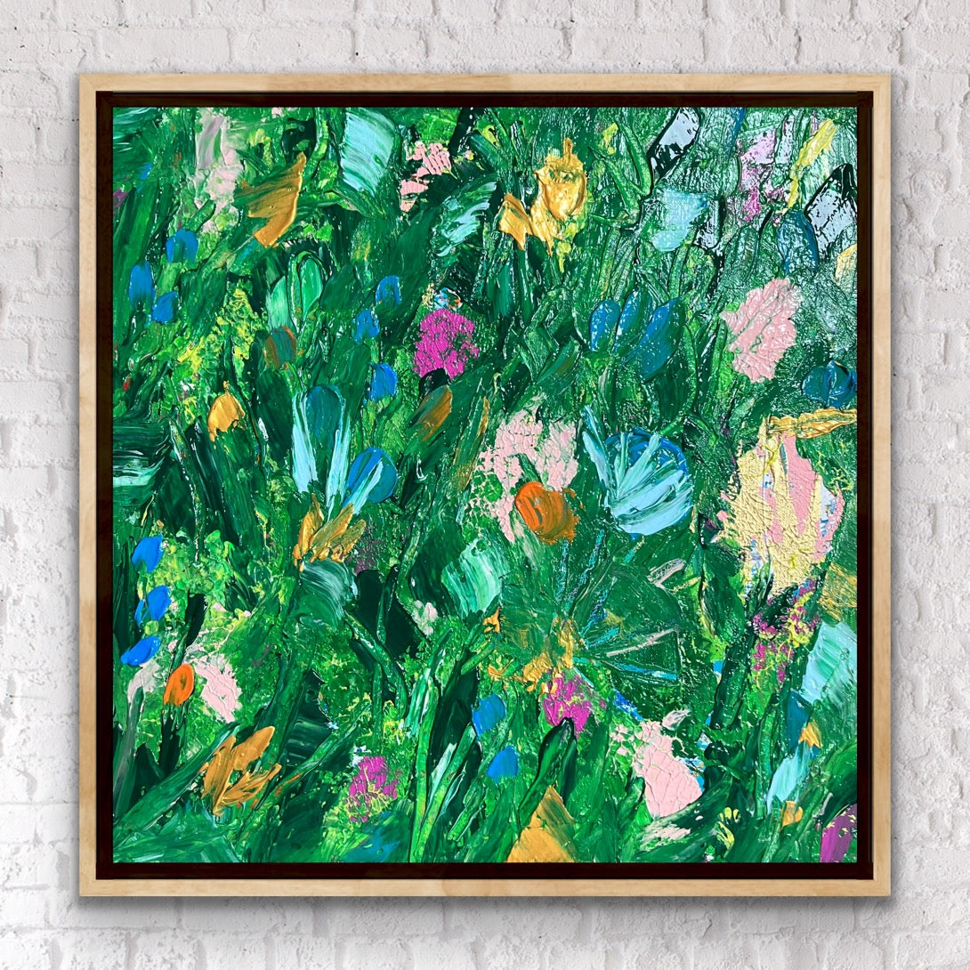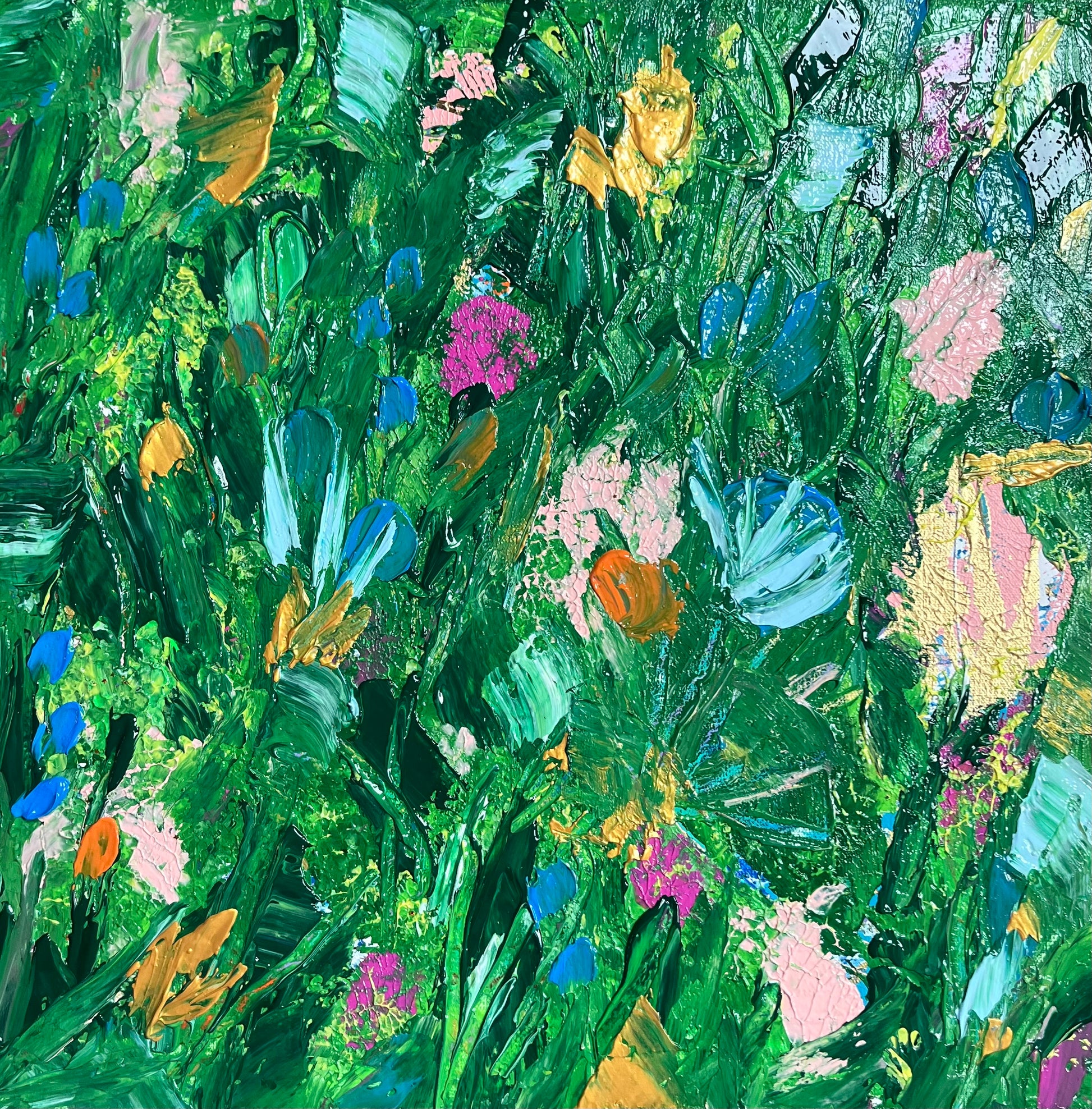 Gorgeous layered texture of paint on gallery wrapped canvas. This baby feels alive and full of joy. Perfect for any space.