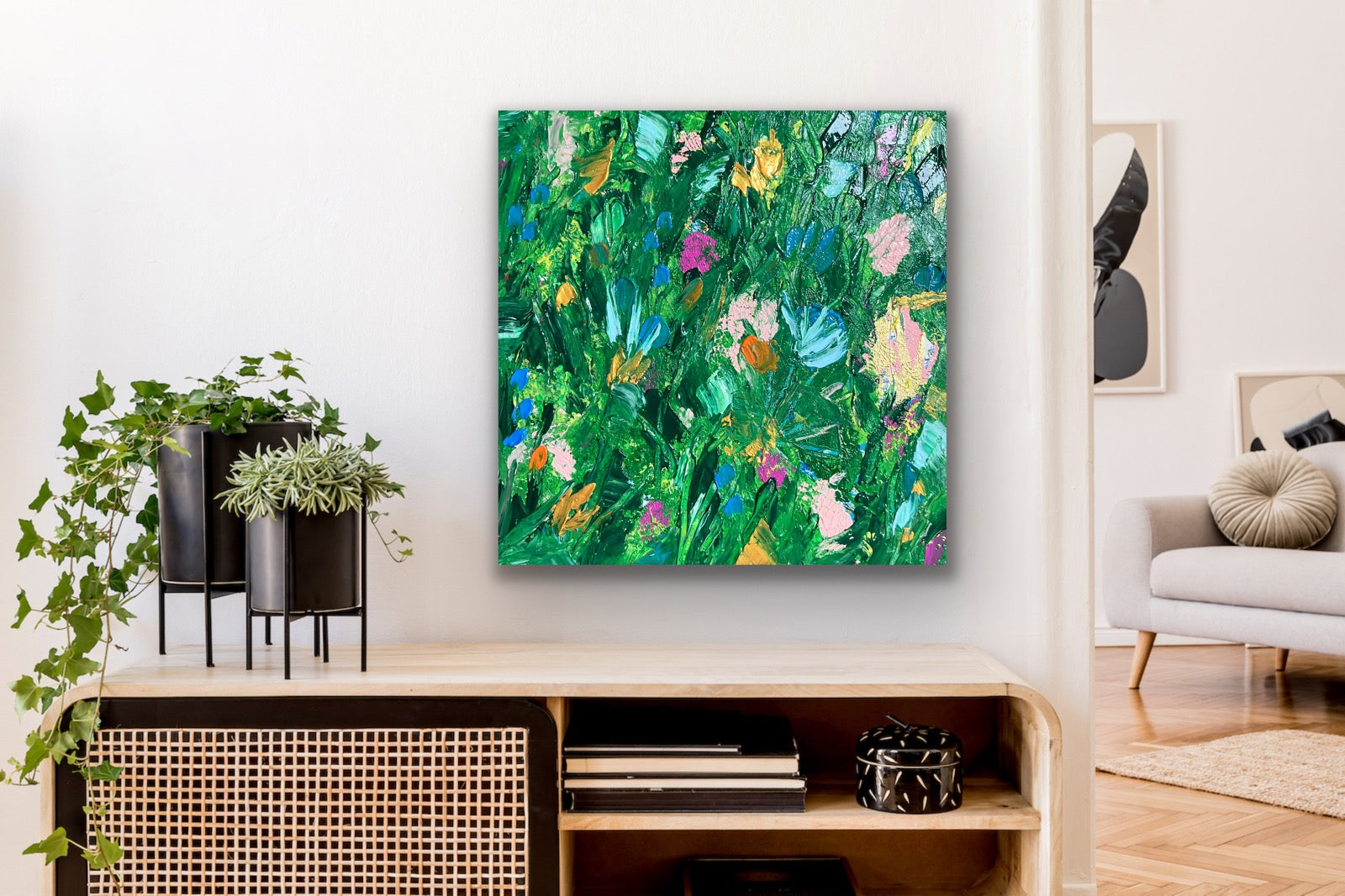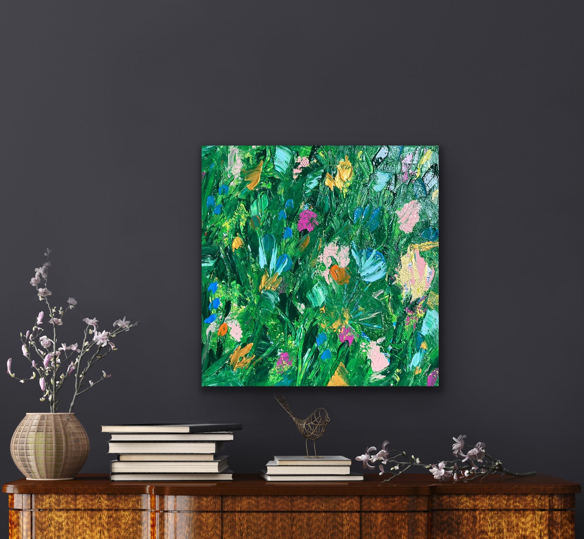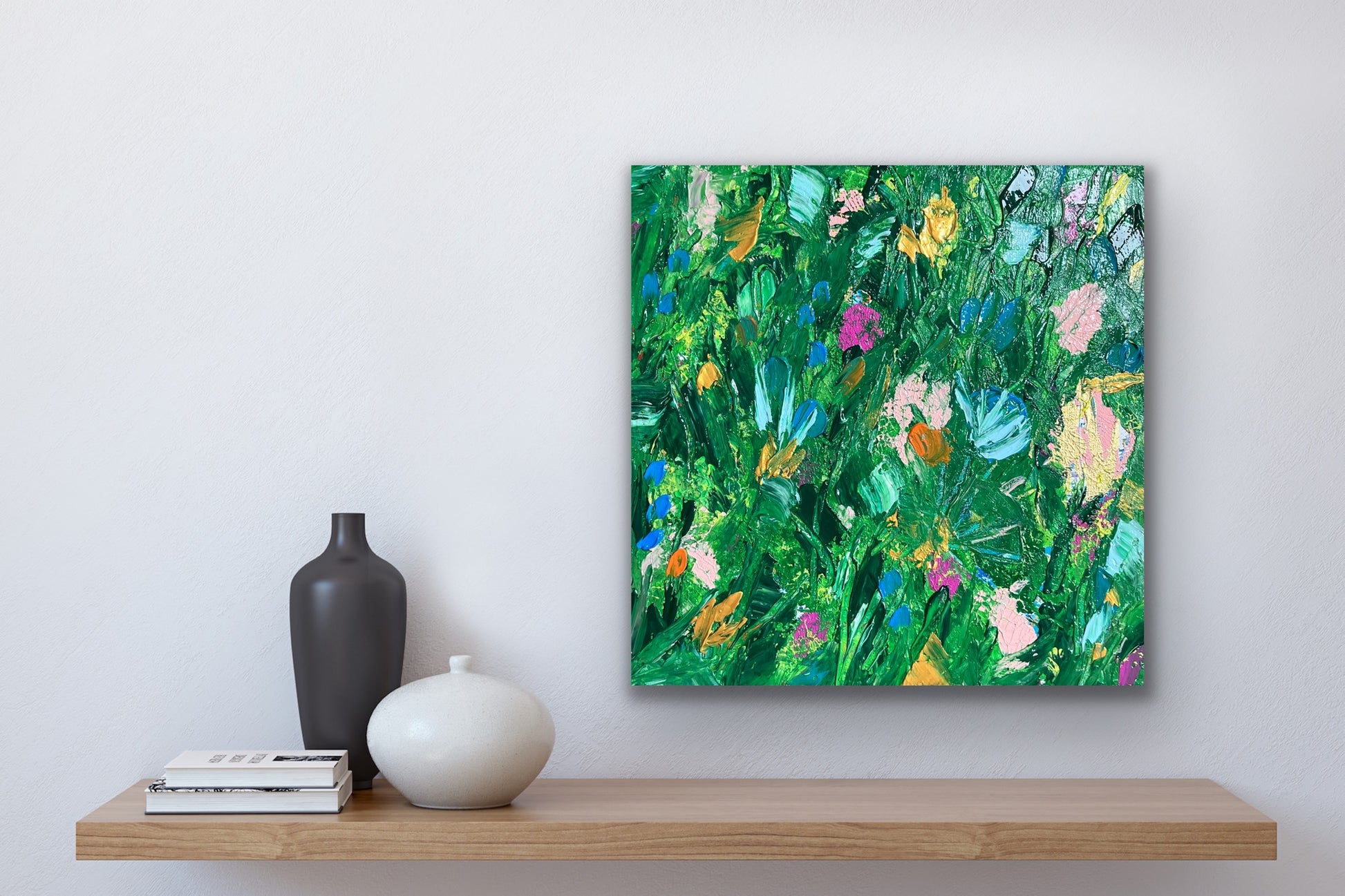 Gorgeous layered texture of paint on gallery wrapped canvas. This baby feels alive and full of joy. Perfect for any space.