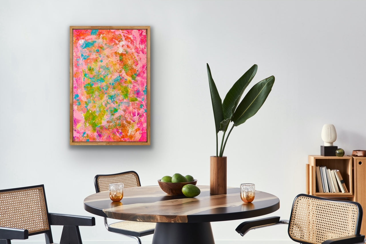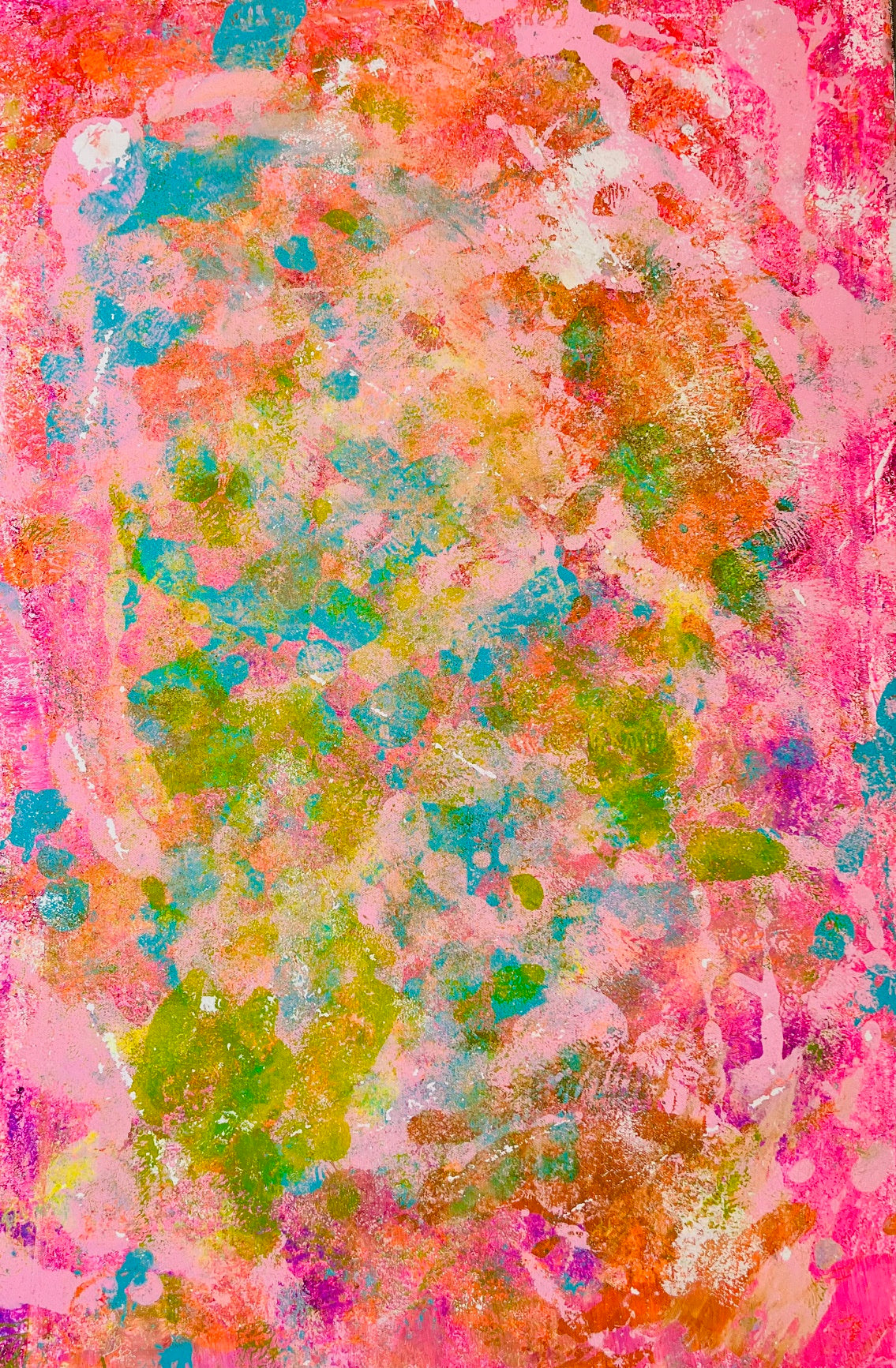 This piece is an abstract painting expressing all of these mixed emotions about how weird and complicated and fun and ridiculous life is.