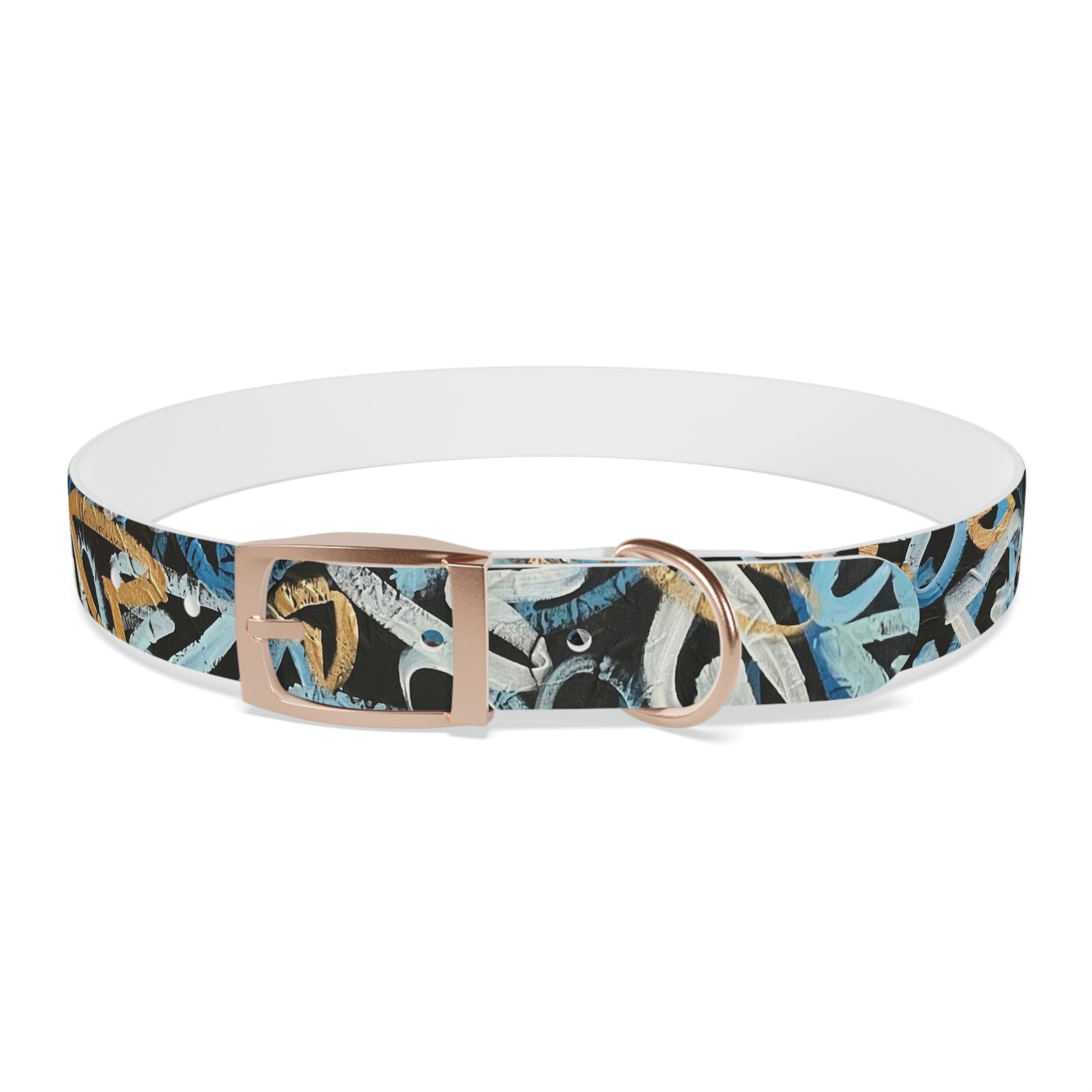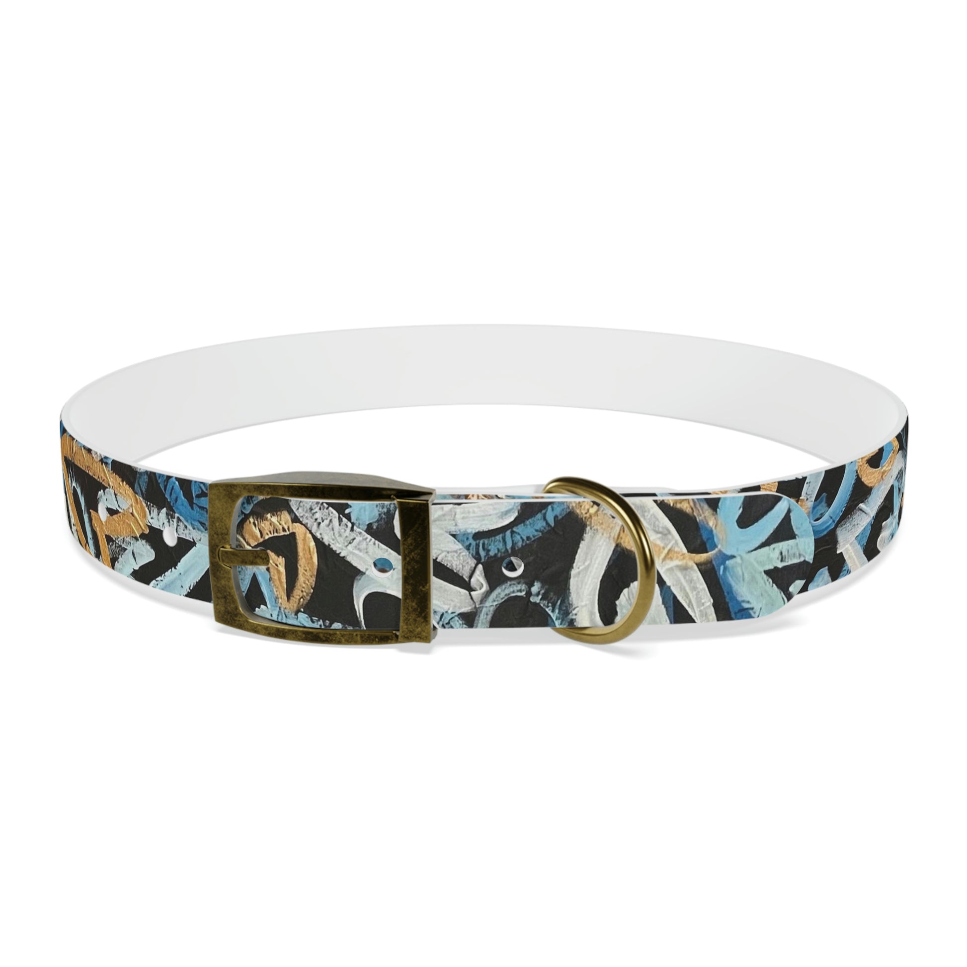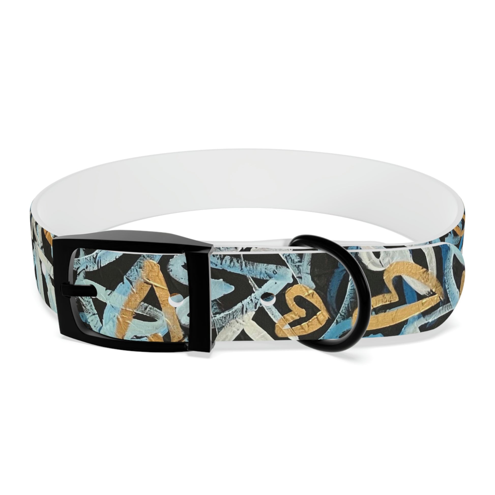 Add a touch of personality for all the playful pet pals out there with a personalized dog collar. Made in the USA from advanced Thermo-Elastomer material, this personalized collar for dogs is odor and stain-resistant as well as hypoallergenic. Original artwork by Jaclyn Altieri.