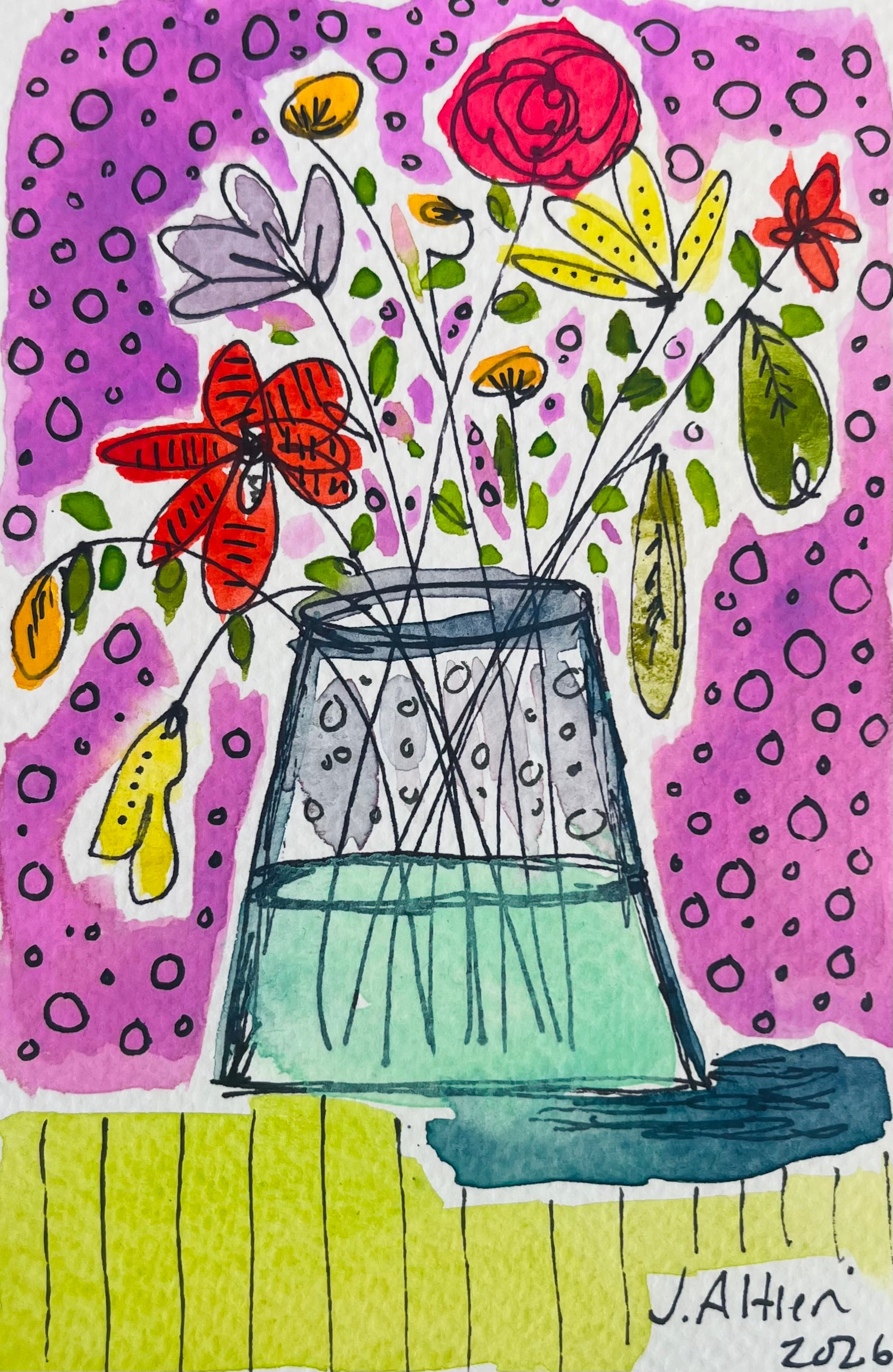 This painting is part of my mini watercolor series, bringing joy and love to your space. These are all original one of a kind paintings and the perfect gift as these flowers will never wilt. I painted this series during the dead of winter to give hope to spring and lighter days ahead. Hope you love them!
