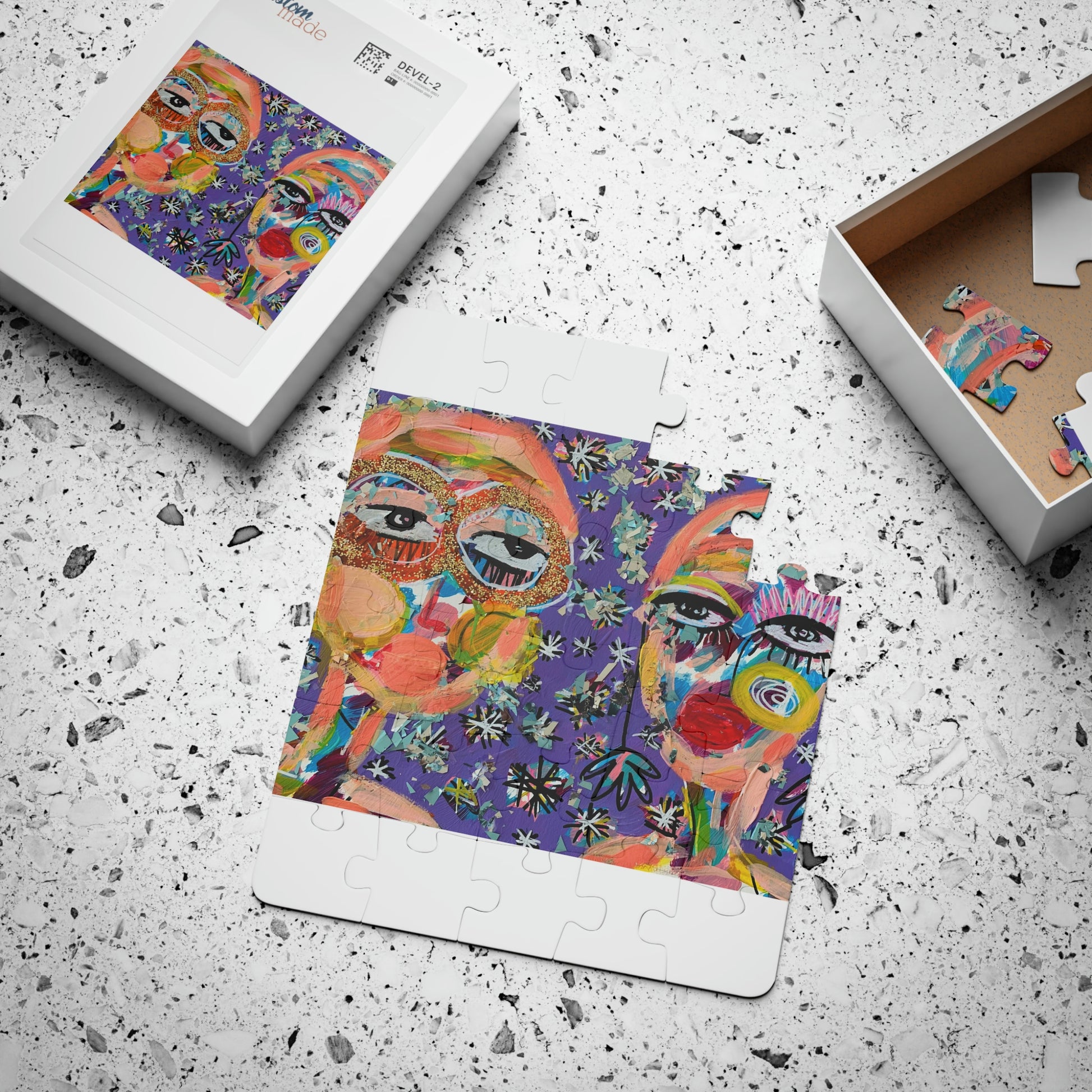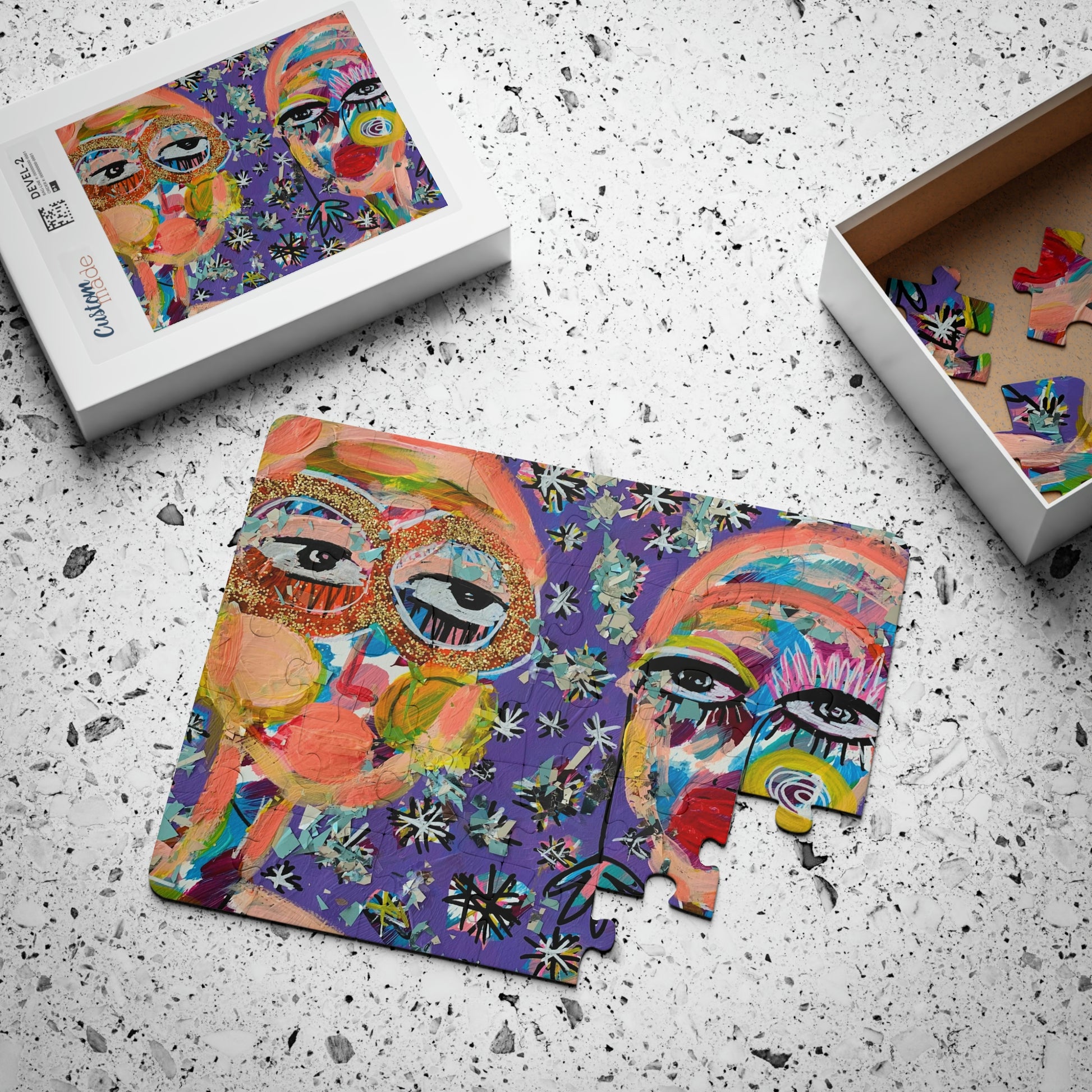 Puzzles are an all-time favorite activity, you can help youngsters have some quality time by solving their own Starry Nights with Friends kid's puzzle. Available in a toddler-friendly 30-piece pack, each puzzle comes with large pieces and rounded corners for safety and parental peace of mind. Each puzzle is made with chipboard and comes with a reference photo for problem-solving. ORIGINAL ART BY JACLYN ALTIERI